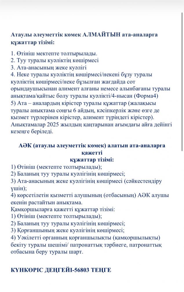 МЕКТЕПТЕ ТЕГІН ТАМАҚТАНУҒА АРНАЛҒАН ҚҰЖАТТАР ТІЗІМІ